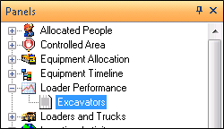 A Loader Performance panel can be configured to show the workload and performance of loaders over a specified period of time. A graph shows the performance of each selected loader. By varying cycle times and the number of trucks, it is possible to optimise loader waiting times and truck queuing times.