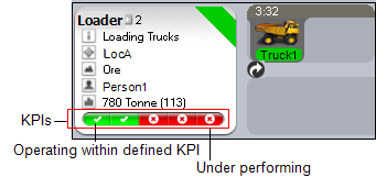 A red button on the KPI bar indicates the fact that the equipment unit is under-performing. In other words, the key performance indicator (Production Rate for example) has fallen short of target.