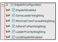Attribute DispatchEnabled If the value is 1 AND valid weighting values have been defined, the Dispatch system is enabled and will automatically allocate trucks to loaders. If the value is 0 AND no weightings are defined, the Dispatch system is NOT ENABLED during the shift. If the value is 0 AND at least one weighting is defined, the Dispatch system is running in RECOMMENDATION mode during the shift. RECOMMENDATION mode means that any dispatch decisions must be made by the Control Room Operator in Data Acquisition. SameLoaderWeighting This weighting defines how important it is that a truck remain with its assigned loader.