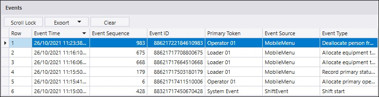 On completion of these steps, the Control Room Operator on site will be able to view the saved GPS events displayed in the Events pane of Data Acquisition.