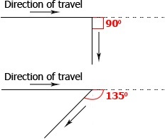 Add Corner and Ramp speed restrictions. In addition to automatically calculated speeds generated from looking up the truck’s rimpull and retard curves, speed limits can be defined for both segments codes and also roads meeting certain criteria. These criteria include the grade of the segment (for ramps) and the angle change between two segments (for corners). Corners are applied to a change in angle between the original direction of travel and the new direction of travel illustrated in the image below.