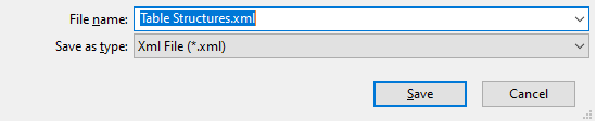 Click Accept to export the table structure to an .xml file that can be imported to another project.