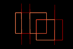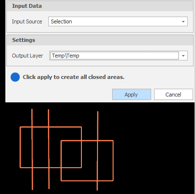 Click Apply to create all closed areas. For example, two rectangles intersected by four vertical lines are selected as the input data: