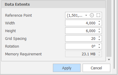 The height of the grid is calculated automatically based upon the current data extents, You can enter a value or use the increment controls to adjust the value up or down.