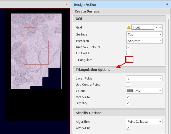 When the Simplify check box option is selected, a Point Collapse algorithm is applied to the triangulation process. This is currently the only option.