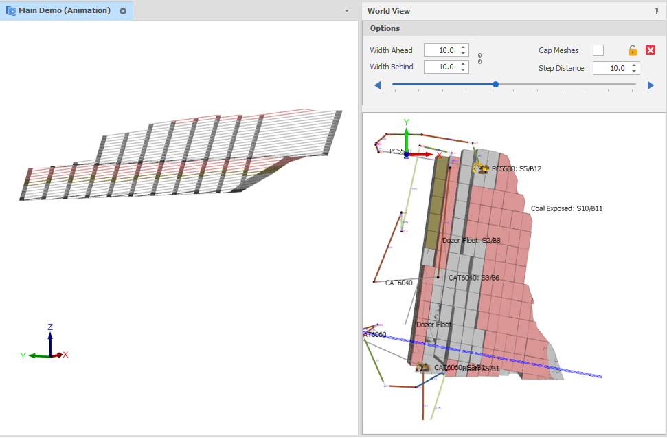 The Cap Meshes check box option in the World View panel toggles whether the solids and triangulations that are clipped by the sectional view have caps on their clipped ends.
