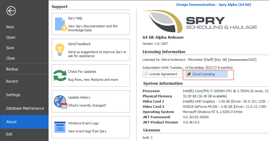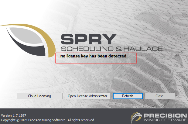 Return to the Micromine Spry application and click Refresh. Your Cloud Licence should be detected.
