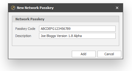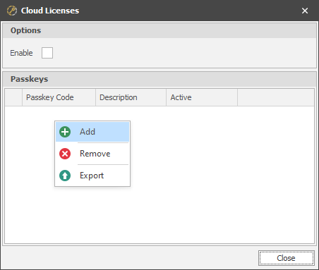 In the Cloud Licences window, right-click and select Add to add a Passkey Key: