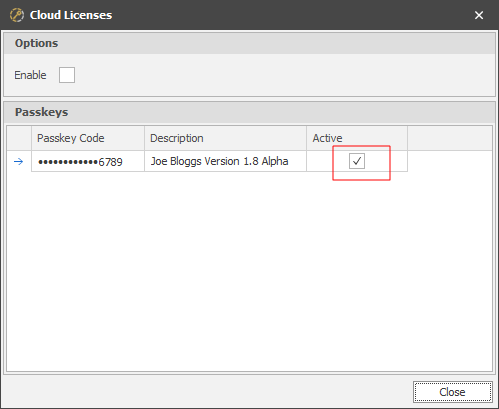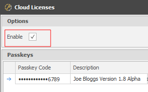 When you click Add to add a Passkey, it is made active by default (when more than one cloud licence passkey is listed, only one can be made active):