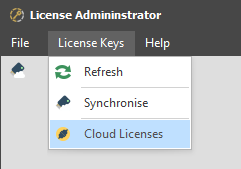 In the Licence Administrator, select Licence Keys | Cloud Licences: