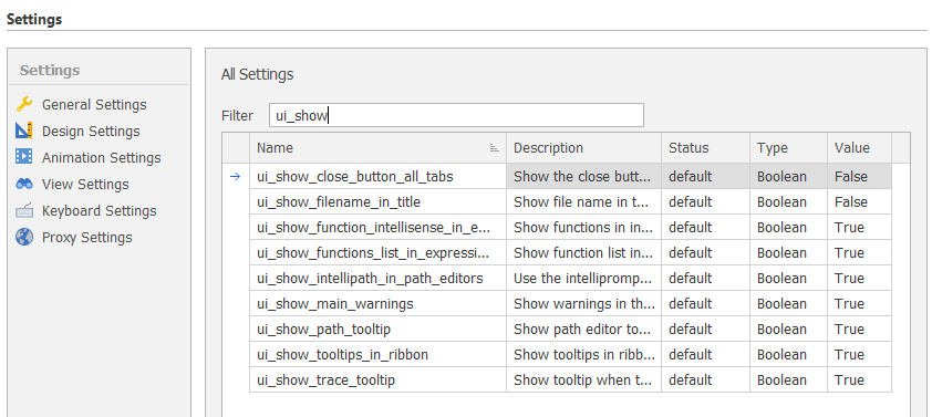 To help prevent the accidental closure of document tabs, a Close button is only shown on the active tab rather than on all tabs. This is controlled via a ui_show_close_button_all_tabs user settings under All Settings.