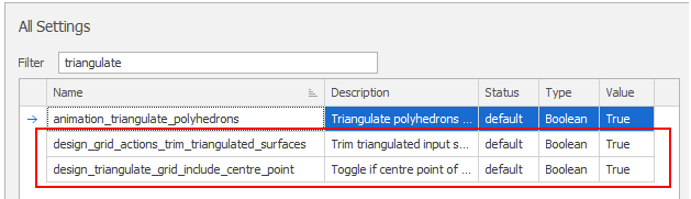 If you are working with large grids, it is recommended to change this setting to False to reduce the size of triangulated grids.