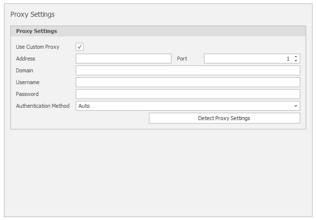 Use the options on the Proxy Settings page of the Micromine Spry Settings window, to set proxy settings for a Proxy Server.