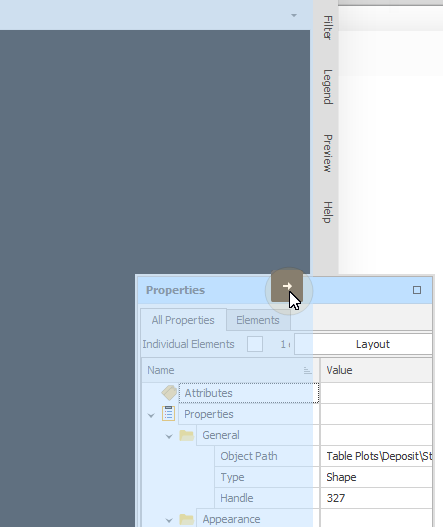 If you move a floating pane over the top, bottom, left or right edge of the Design Window, you can use the docking guide to dock it as part of a tabbed group: