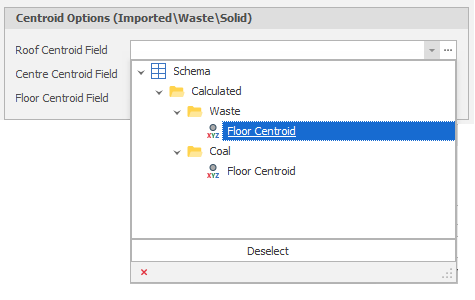 Select a Solid to calculate centroids for and then select the Point3D fields to populate with the calculated centroid values.