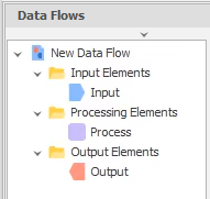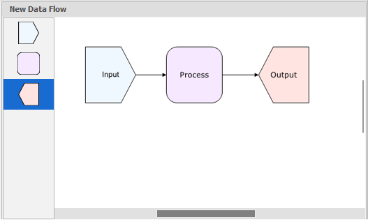 If you've ever created a flowchart, you'll already have noticed that a data flow diagram is similar. Typically, a data flow will have (at a minimum) one Input element, one Processing element and one Output element.