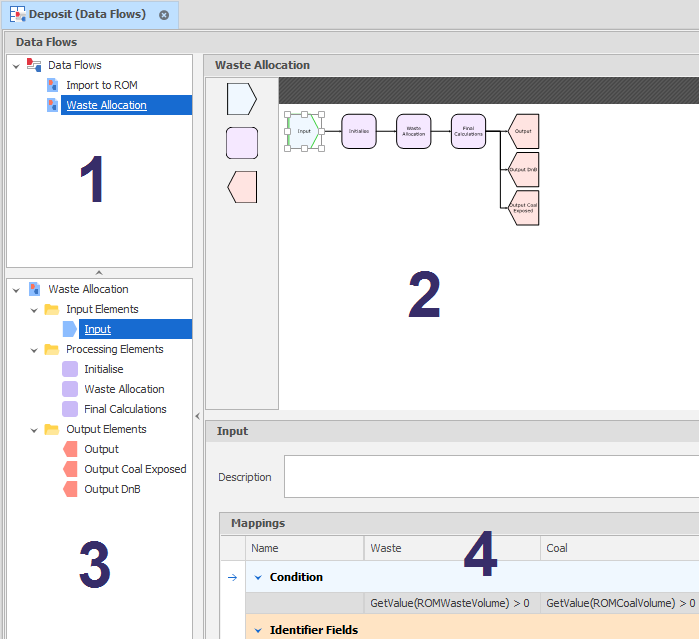 The Data Flow Window has four main areas: