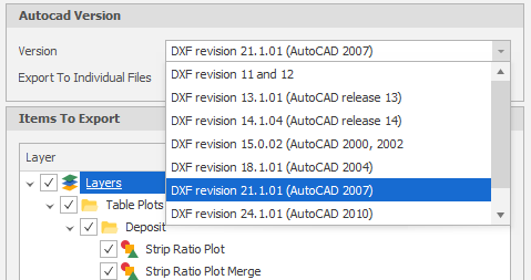 In the Export Layers to DXF wizard, accept the default or select a DXF file revision. File formats vary between different AutoCAD releases: