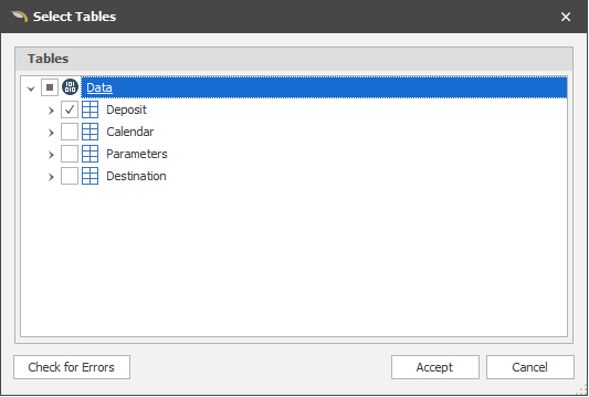 In the Select Tables window you can expand or collapse each table structure (by default each table structure is expanded).