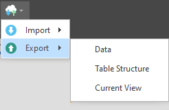 When a data table is open, an additional Current View option is available on the Import/Export menu: