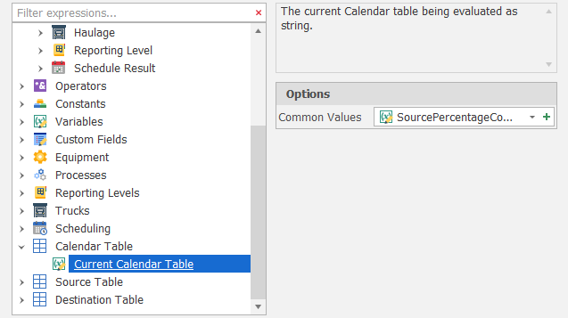 Scheduling: Only appearing on Scenario Expressions, the variables available here vary significantly depending on where the Expression is being used. Equipment Expressions only have access to the Current Date, Custom Field Expressions have access to everything and others fit somewhere in between.