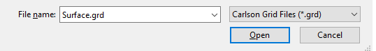 You can import a Carlson (*.grd) grid file into the application when either the Design Data window or the Animation window is open: