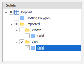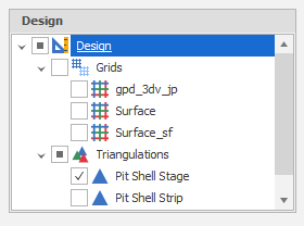 Select the topography and/or grids that will be compared with the solids to determine the percentage completion (Source reserves) or percentage filled (Destination reserves).