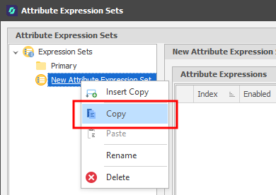 1. You can then right-click on the Expression Sets node or a folder and select Paste to append the copied set at that location: