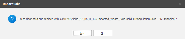 Click Import Solid to replace the current solid with an imported solid. You will be prompted to clear and replace the current solid: