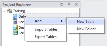 To create a new Table, right-click Data in the Project Explorer window and choose New Table. You can also sort your Tables into folders if you wish.
