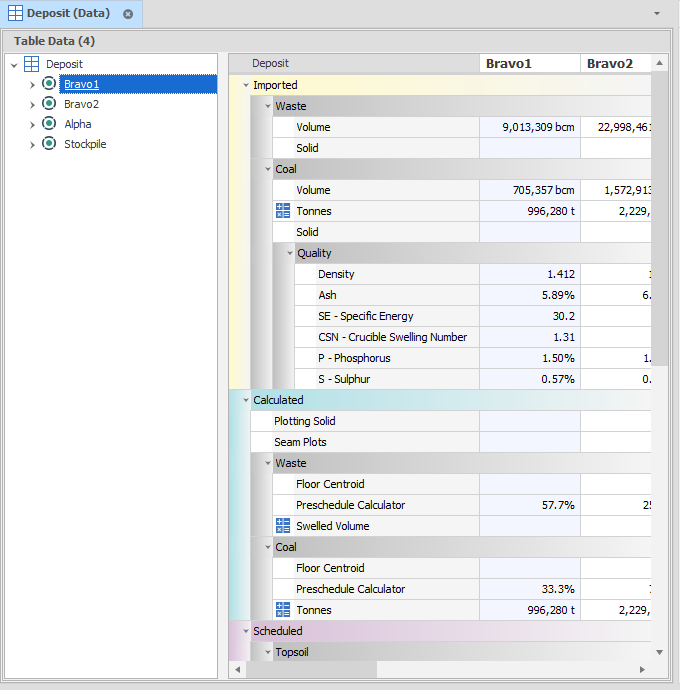 Select Table Data to view and manage mine site reserve data as a collection of Tables.