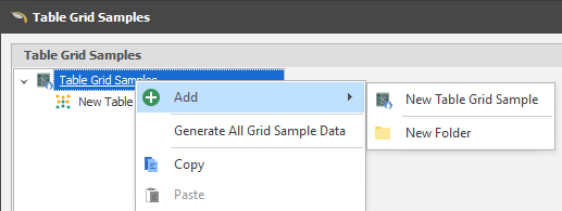 Right-click on the Table Grid Samples node of the selection tree and select New Table Grid Sample.