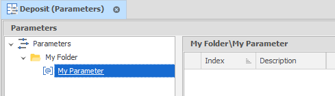 If you want to organise parameters in folders, the option to add a New Folder is also provided. Right-click on a folder and select Add to add a parameter to that folder. You can also use the mouse to click and drag a parameter to move it into a folder.