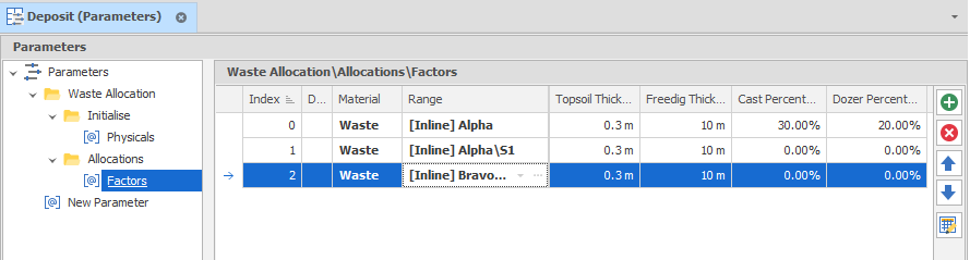 To quickly add a row, right-click in the right-hand pane and select Add. You can also the tools on the right-hand side of the Parameters window to manage the parameters of the current table: