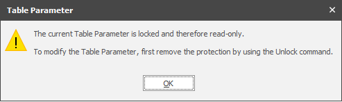 . To avoid inadvertent changes to the cells in the Parameters window, Locked (