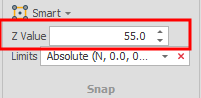 Limit snapping to a specific Z level by entering a value. Use the increment/decrement controls to adjust the Z value up or down.