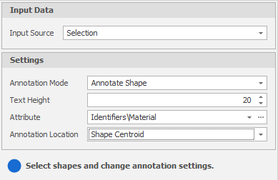 Annotate Shape mode is a little more involved, since it allows you to annotate the shapes you have selected with the values of a chosen attribute. Its settings are described below: