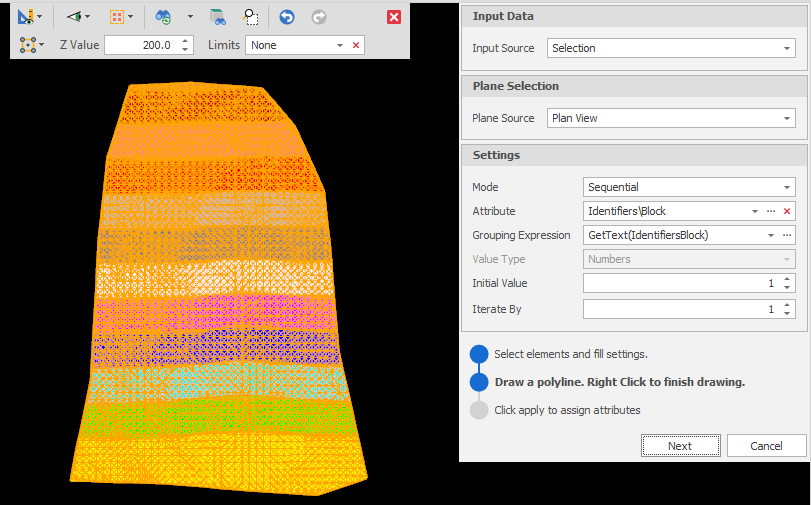 Since attribute values can be set for Text elements and Layer Triangulations, this option is also available on the Text and Triangulation tabs, in the Utility group.