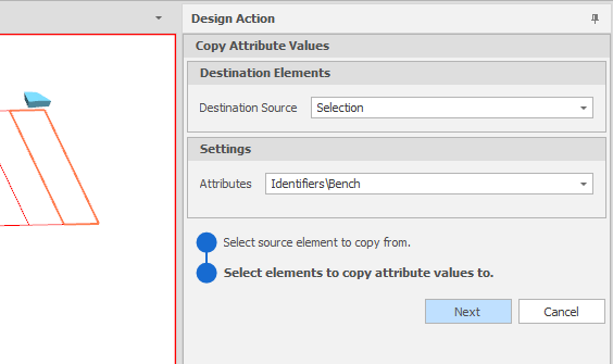 Select the Destination element to copy attribute values to and then click Next: