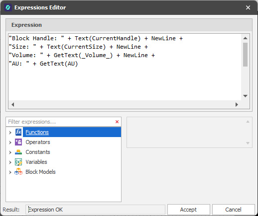To clear the tooltip expression that has been set for a layer: In the Design Data pane, right-click on the Block Model layer and select Design Tooltip Expression | Clear.