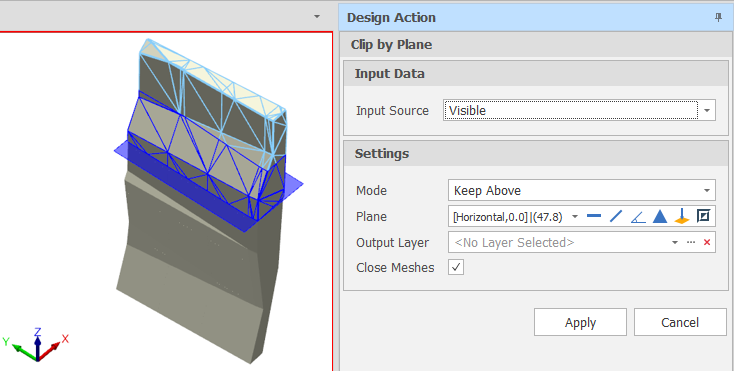 Select a (Keep Above, Keep Below, Keep Both) Clipping mode. This determines which triangulations are kept as a result of clipping by plane.