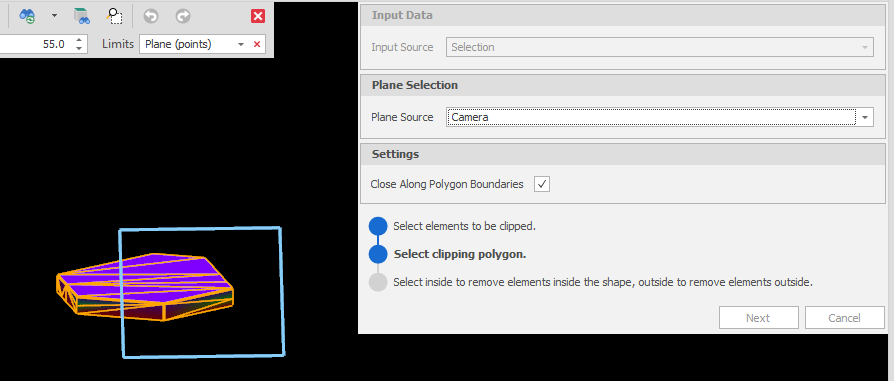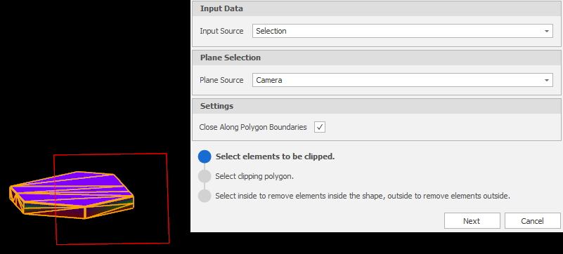 For solids, select the Close Along Polygon Boundaries option if you want to close the clipped solids.