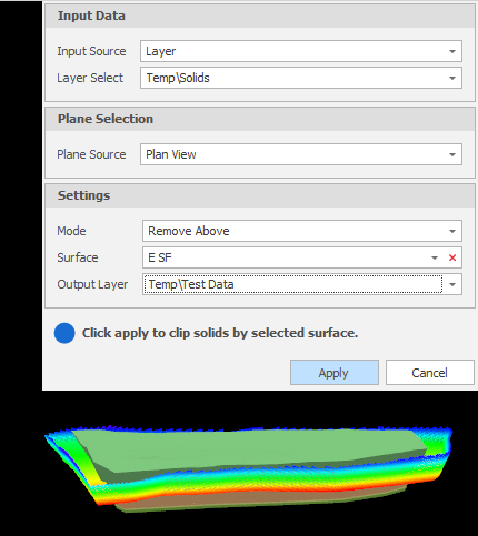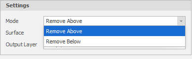Remove Above Clip by removing portions of solids above the specified surface. Remove below Clip by removing portions of solids below the specified surface.