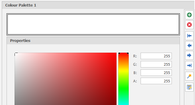 When you create a palette from scratch, a Colour Preview pane and a Colour Spectrum can be used to select and add colours to an EMPTY palette.