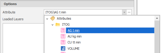 Use the drop-down to select an attribute of the selected layer(s). To browse attributes and their properties click the ellipsis.