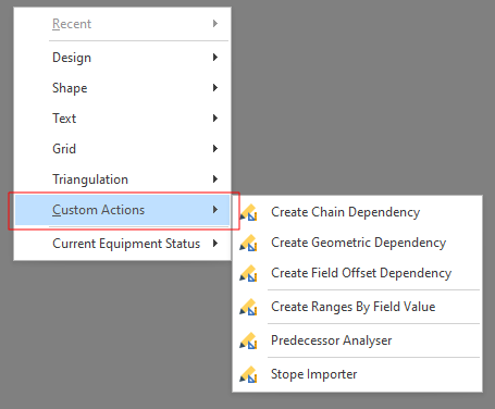 Custom Design Actions in Micromine Spry provide a framework which allows scripting to be used to write functions that interact with the layers in the Design Window and Design (Animation) Window.