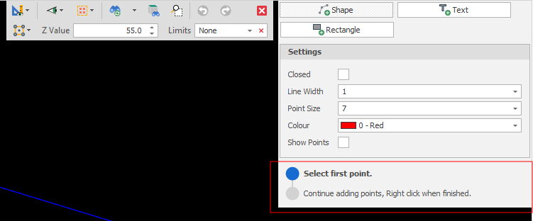 customDesignAction.ProgressSteps = () => new List<string>() { "Select first point.", "Continue adding points, Right click when finished." };