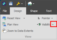 A Design Visibility drop-down menu is available on the Design ribbon tab, in the View group, when either the Design Window or the Animation View has focus. When the Animation View has focus, the Design Visibility drop-down menu is also accessible on the Home ribbon tab in the View group.