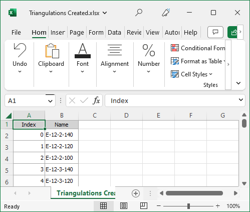 (Optional) Click Export to export the list of triangulations to an Excel worksheet (log file).