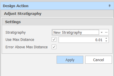 You can also click an Adjust Grid Height button at the bottom right of the Setup Stratigraphies dialog to run the Adjust Stratigraphy utility. In this case, a Maximum Distance check is not applied.